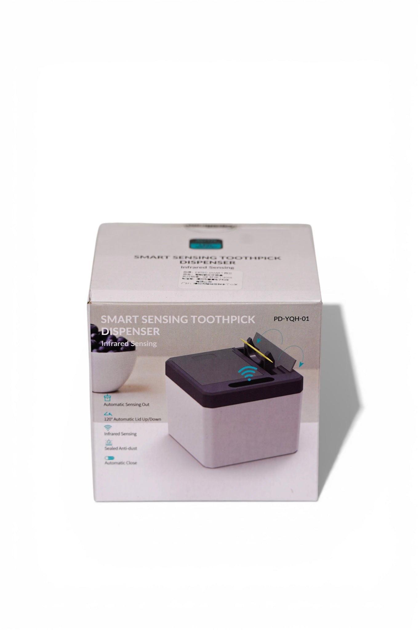 Den smarta sensortekniken gör att locket öppnas direkt när du för handen nära, vilket ger snabb och enkel åtkomst till tandpetare utan att behöva röra vid behållaren. Perfekt för kök, matbord eller servering där hygien är extra viktigt.
