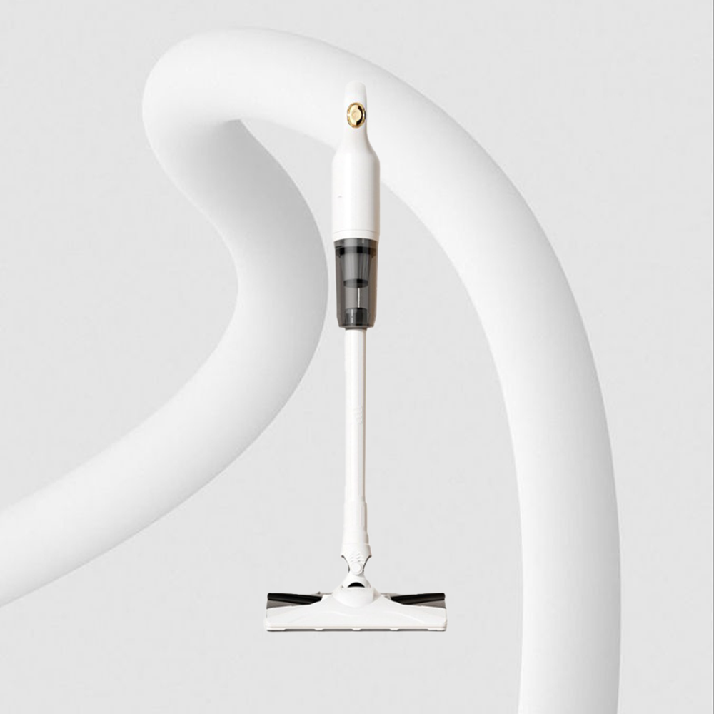 Dammsugaren har uppladdningsbart batteri och laddas via USB Type-C. Den kan användas utan sladd och är enkel att ställa undan stående mot vägg när den inte används.