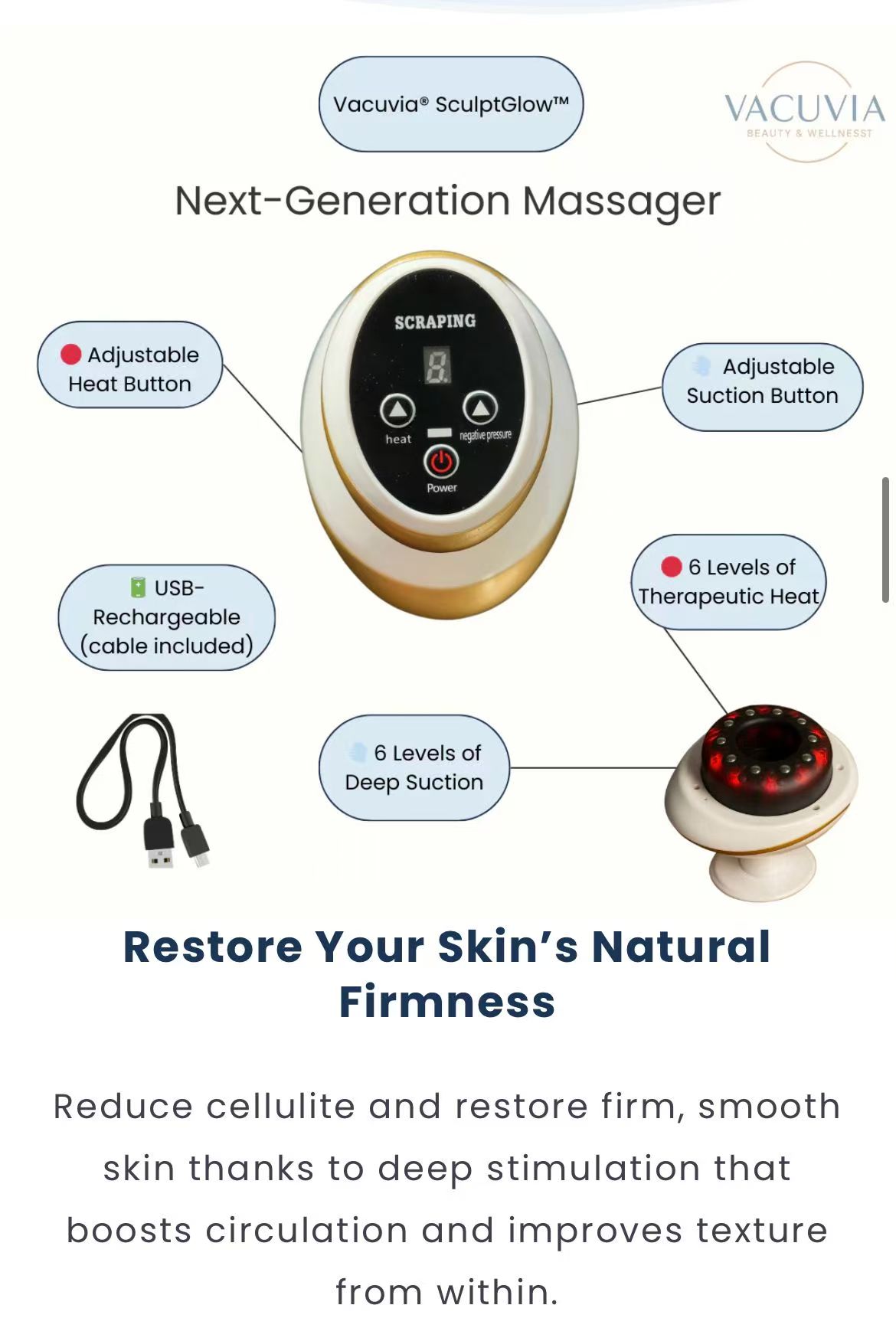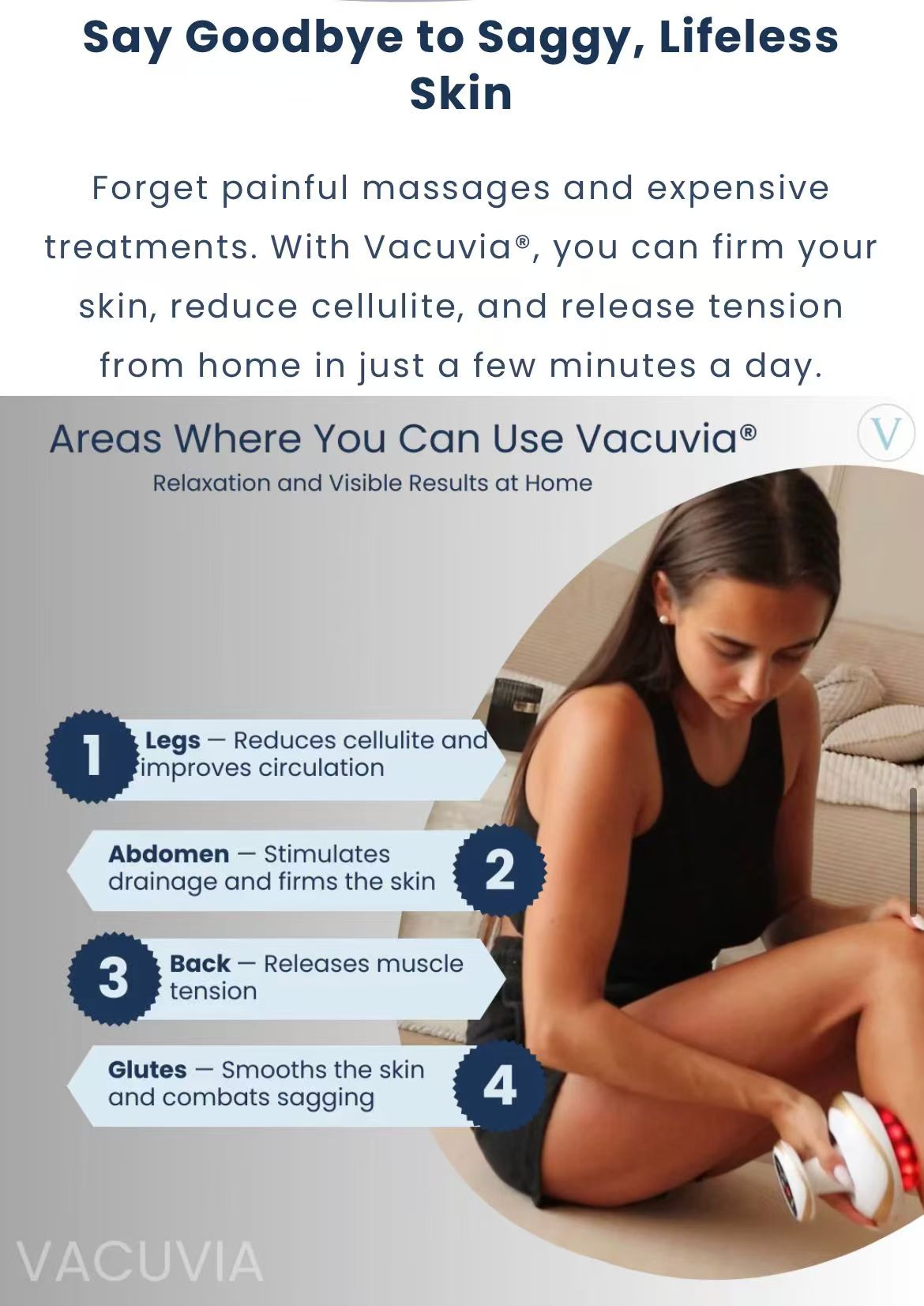 Denna elektriska massageapparat är utformad för användning på hela kroppen och används främst för cellulitmassage och muskelmassage i hemmet. Kombinationen av sugfunktion, värme och vibration gör den lämplig för områden som lår, säte, mage, rygg och armar.