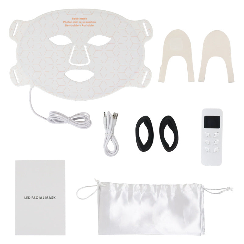Den flexibla silikonmasken är lätt och bekväm att bära. Masken styrs via medföljande fjärrkontroll och laddas med kabel. Den är avsedd för stillasittande användning under behandlingstillfällen.